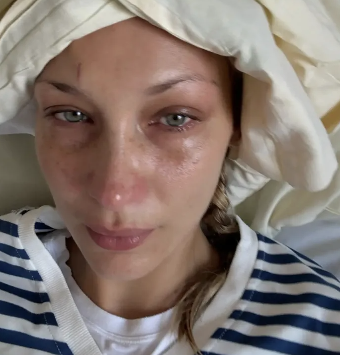 Bella Hadid volvió a preocupar a sus seguidores al compartir una serie de fotos íntimas desde la cama de un hospital, en medio de su batalla contra la enfermedad de Lyme.