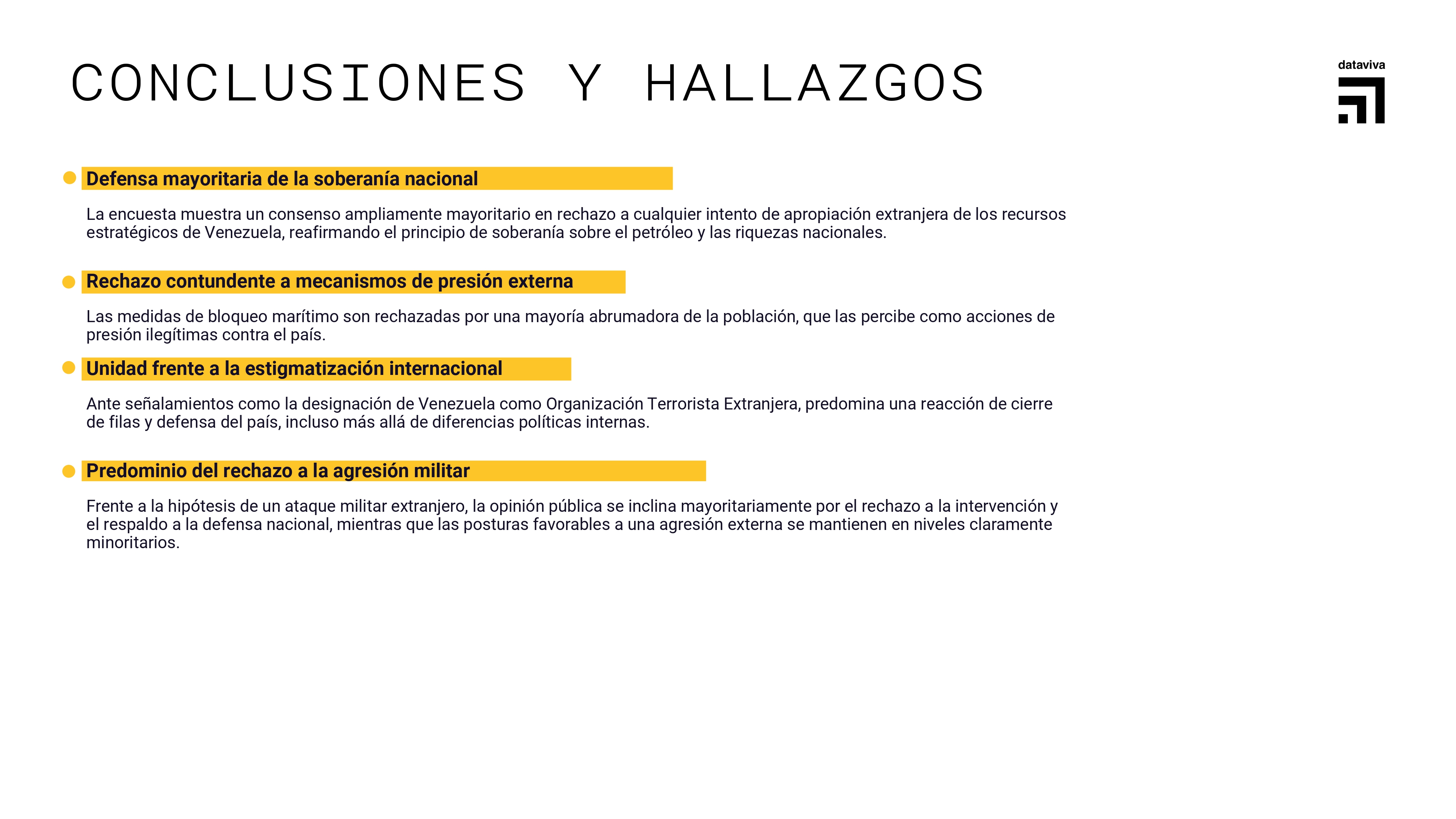 Los resultados de esta encuesta demuestran que, más allá de posiciones políticas internas, el pueblo venezolano mantiene una posición firme, consciente y mayoritaria en defensa de la soberanía, la independencia y la autodeterminación nacional.