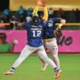 Balbino Fuenmayor no quiso bajar los brazos por el elenco aborígen y descontó la diferencia al 10-4 en el cierre del mencionado inning, pero no contó con el apoyo del resto de sus compañeros en la caja de bateo.