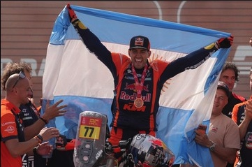 Piloto argentino celebra título en motos en el Rally Dakar