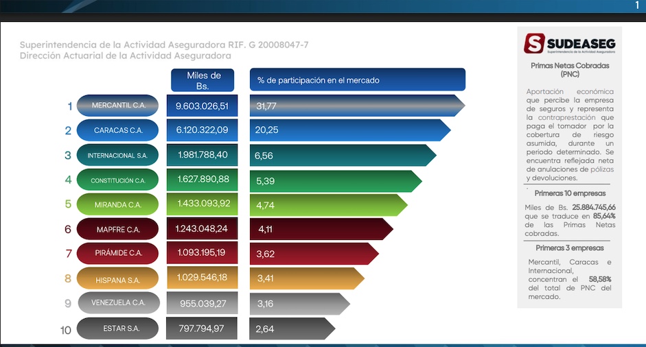 Mercantil Seguros y Seguros Caracas lideran el sector, al sumar entre ambas más del 52% del mercado.
